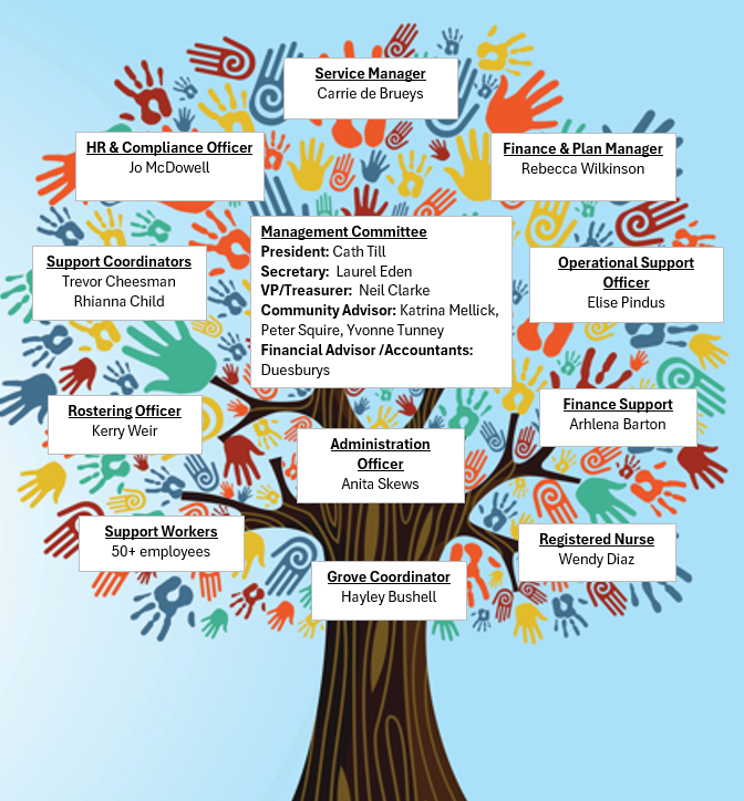 Support Workers: We have a dedicated team of support workers who are undoubtedly our most valuable assets. Without them we would be unable to provide the quality service and support that we offer to Tablelanders with a disability and/or mental illness.